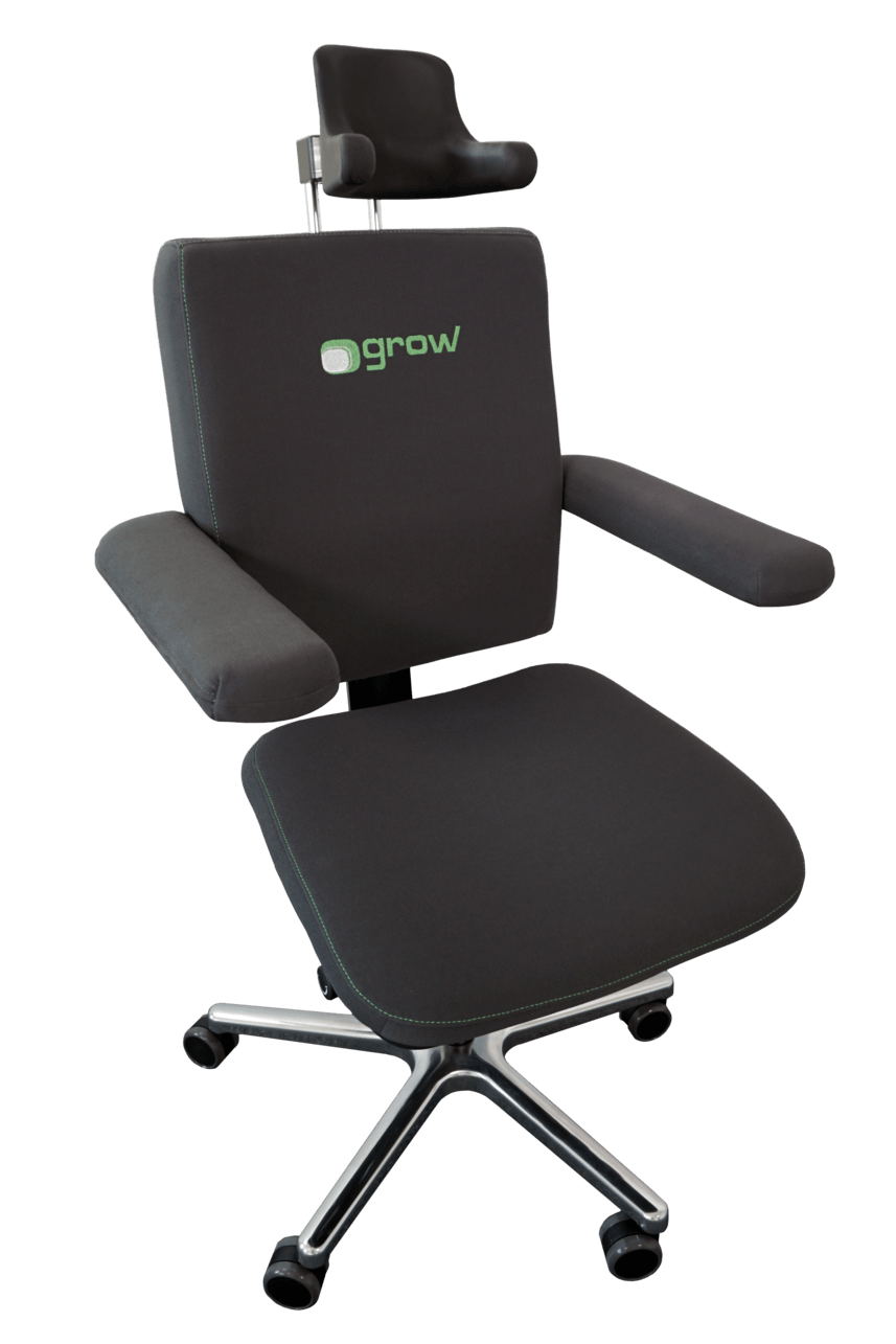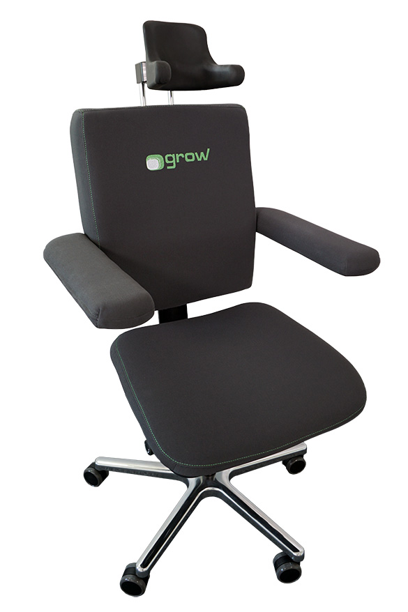 Mit dem grow office haben wir einen Bürostuhl entwickelt, der Ihnen während der Arbeit ein einzigartiges Entspannungserlebnis ermöglicht. Die elektrisch verstellbare Nackenstütze und die Armauflagen entlasten die Bandscheiben, die ermüdete Muskulatur kann sich erholen und Verspannungen im Schulter- Nackenbereich lösen sich.