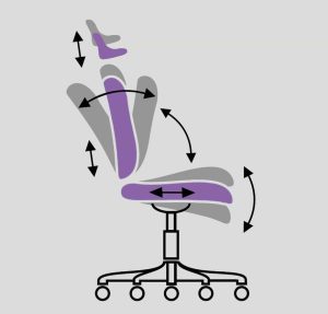 Durch zurückschwenken der Entlastungselemente, kann der grow office auch als ganz normaler Bürostuhl genutzt werden.