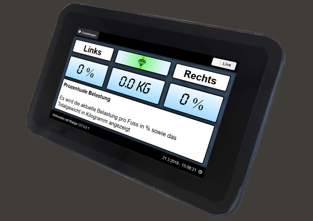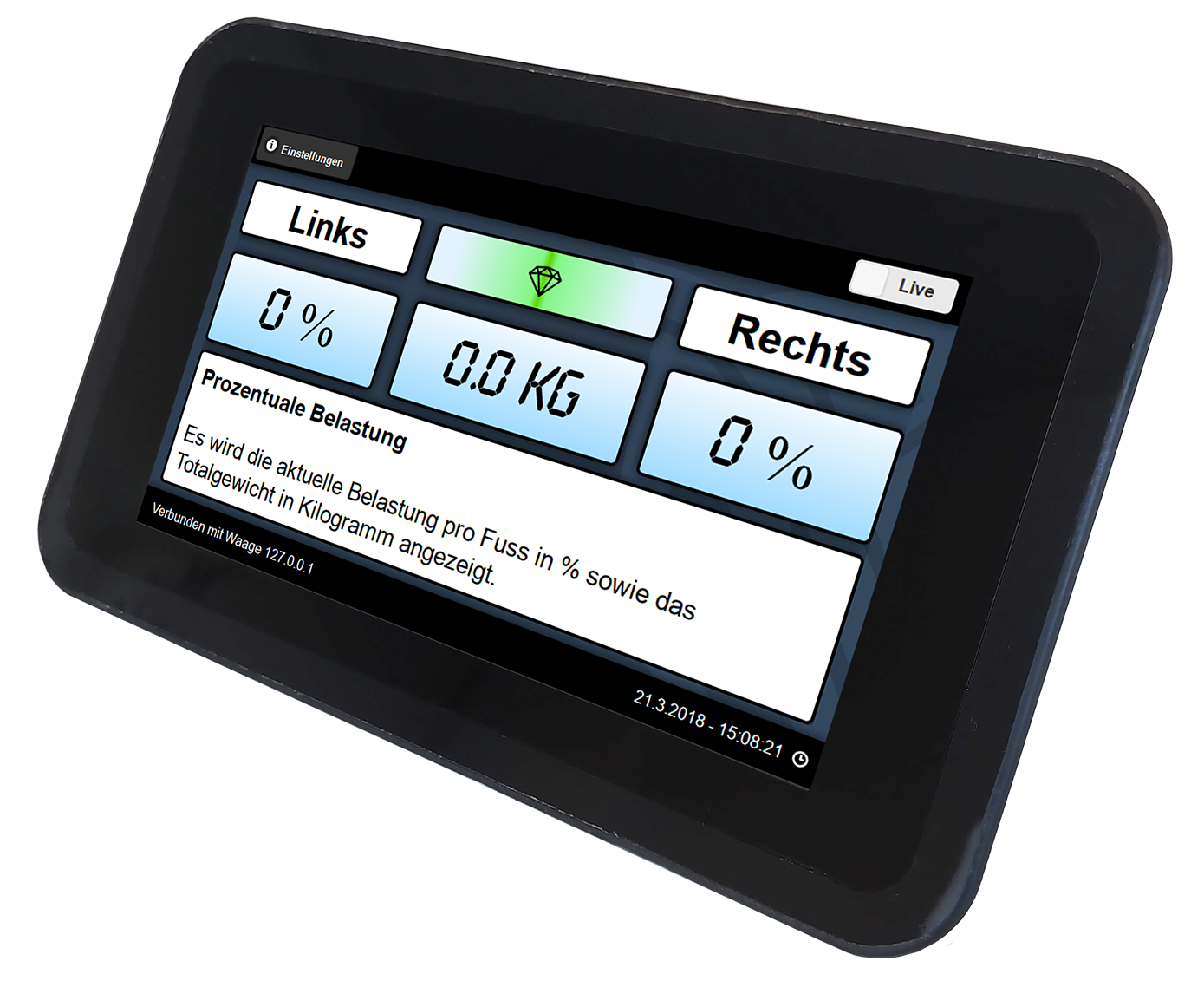 Nach wenigen Sekunden wird die Abweichung in Kilogramm und Prozent angezeigt. Die einfache Bedienung erfolgt dabei über ein 7 Zoll Touchdisplay.